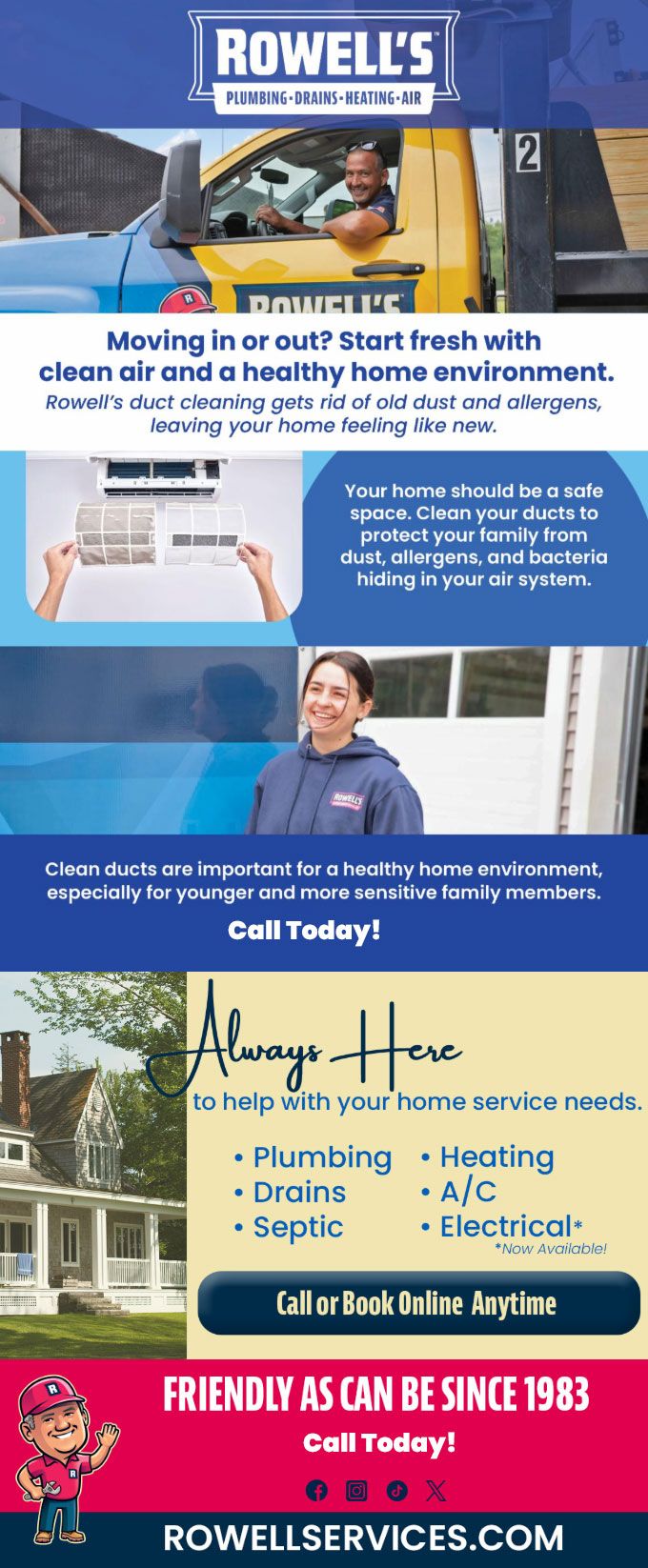 Rowell's duct cleaning gets rid of old dust and allergens, leaving your home feeling like new.